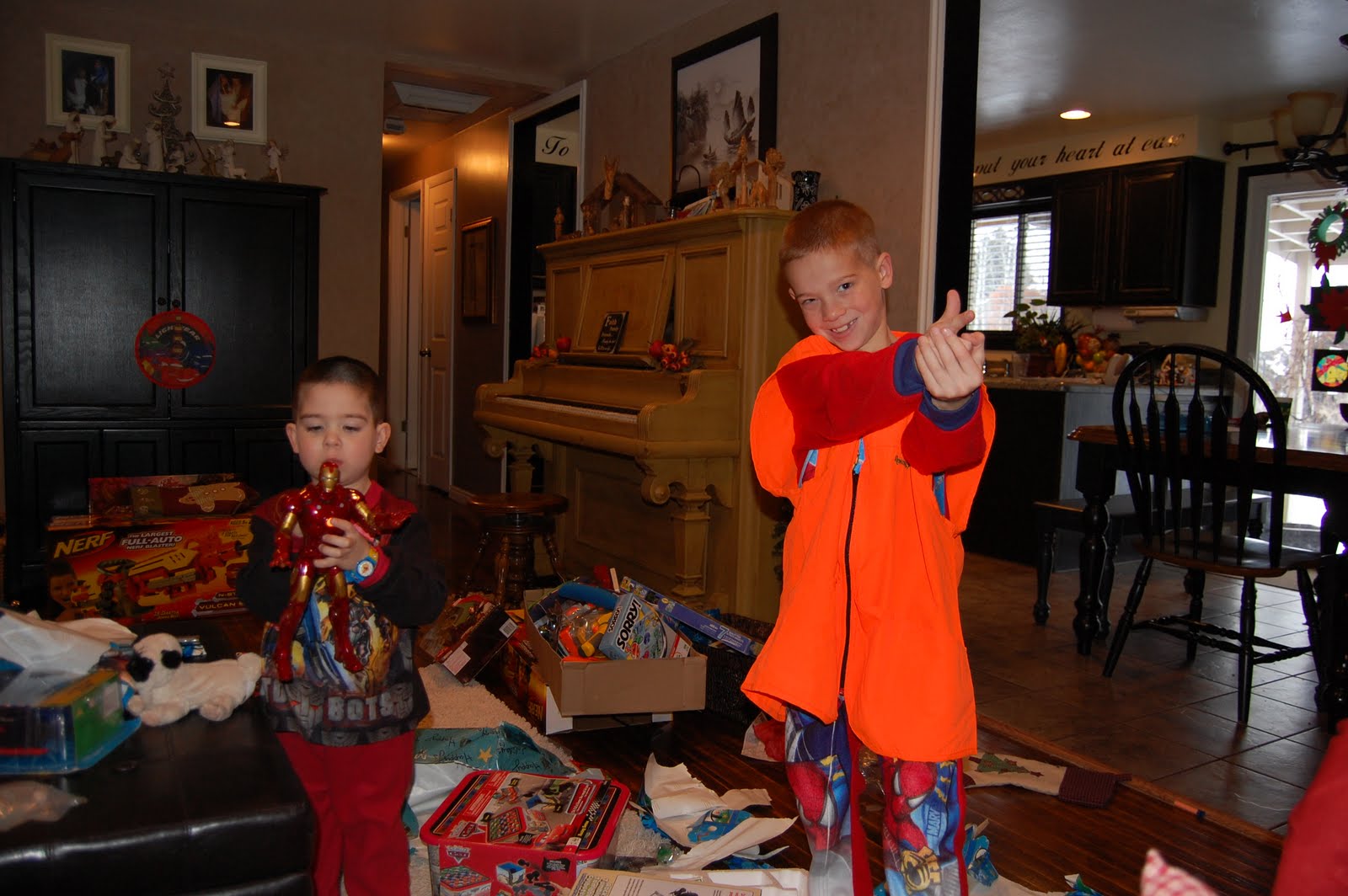 Sometime in November we ran a 5k together. Nate pushed Ashton in the jogging stroller, and I ran with Evan so that people would think I was being slow on purpose to stay with my kid. But the truth is that he could have left me in his dust. He kept saying "Come on, Mom, let's go faster!" and "Can't I go run with dad?" Then, when we got sort of close to the finish line, he said (with a little disgust in his voice) "I bet dad's finished already." I would like to point out for what it's worth, that I had been used to running at sea level, and the altitude here is really hard to get used to!!